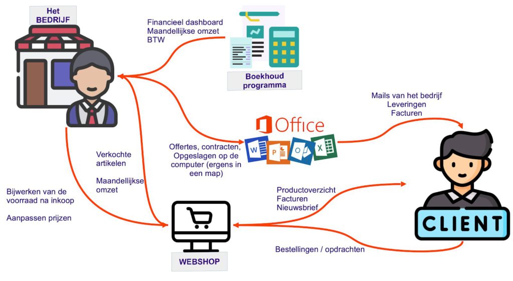 Je hebt een boekhoudpakket nodig om de bestellingen bij te houden en je boekhouder verwijst je naar een programma als Snelstart of eBoekhouden. Jij voert de facturen in in het programma en de boekhouder checkt of alles klopt vanuit zijn eigen kantoor. Wanneer je bedrijf groeit is je eenvoudige website met je mailadres en telefoonnummer onvoldoende.